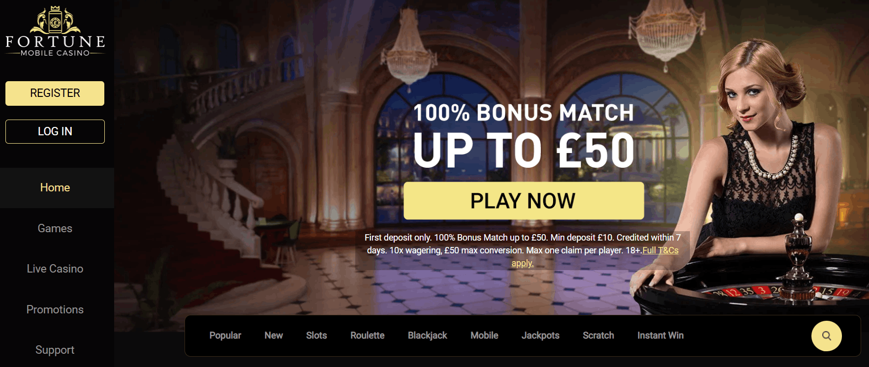 Fortune Mobile Casino is an online casino aimed squarely at mobile players in the UK. It is operated by Grace Media (Gibraltar) Limited, based in Gibraltar, and holds licences from both the UK Gambling Commission (Ref #57869) and the Gibraltar Gambling Commission (RGL Nos. 118 and 125). The site positions itself as a mobile-first platform, with a game library spanning slots, live casino, scratch cards, and instant win titles, all accessible via browser without needing to download an app — though an Android app is also available on Google Play.